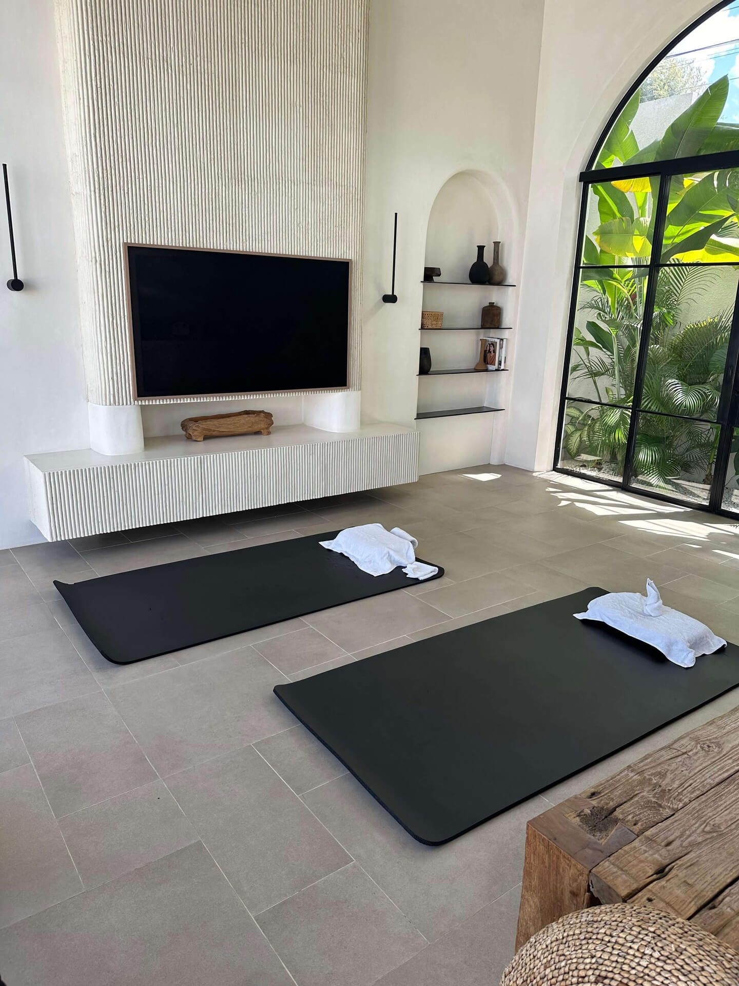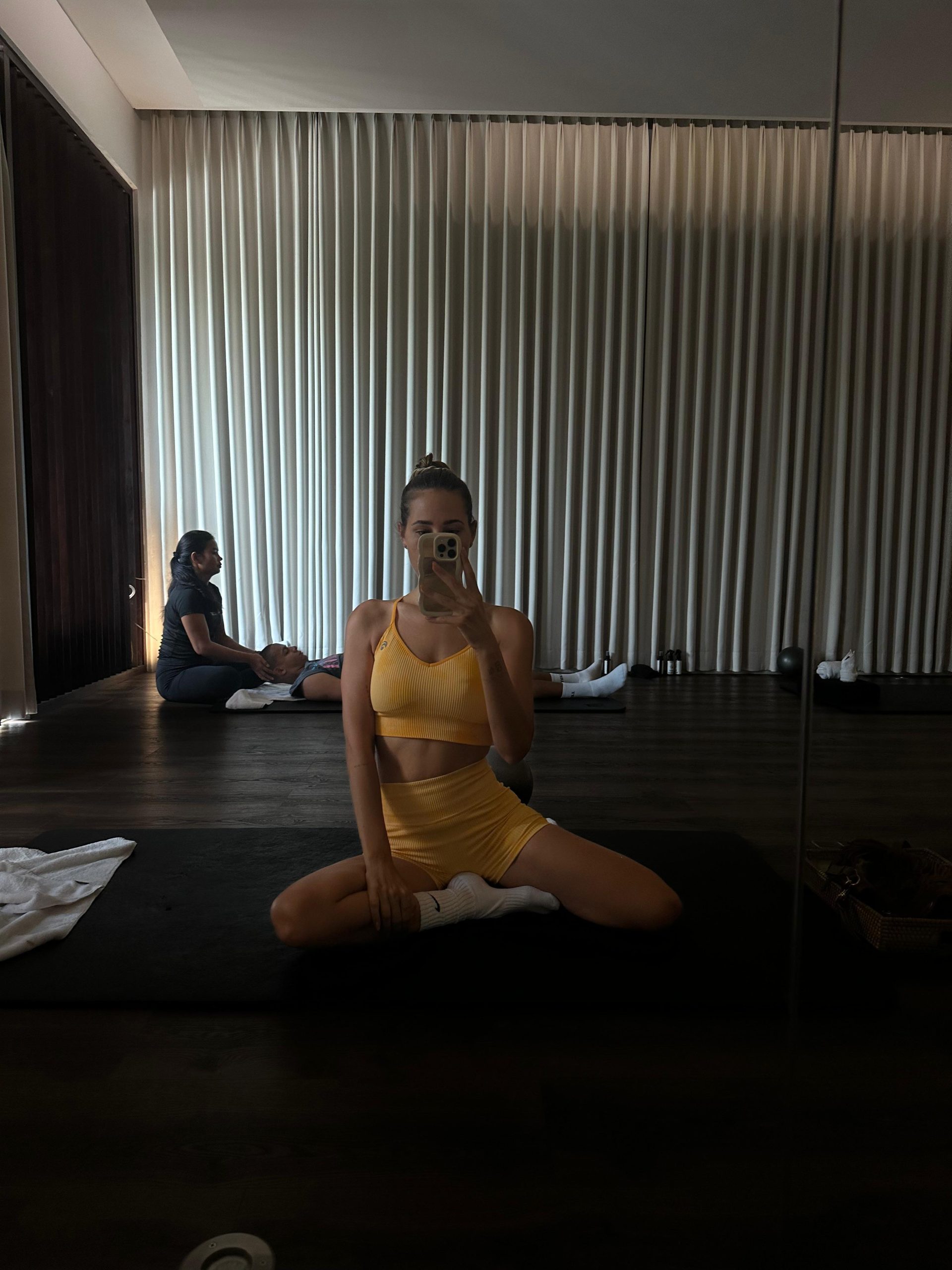 Our thoughtfully designed studio provides a serene sanctuary from Dubai's pace — neutral tones, soft textures, warm lighting, calming atmosphere. Here, you can fully disconnect and focus entirely on your body. Private rooms available for complete discretion. Every detail is crafted to help you relax, release, and rejuvenate.